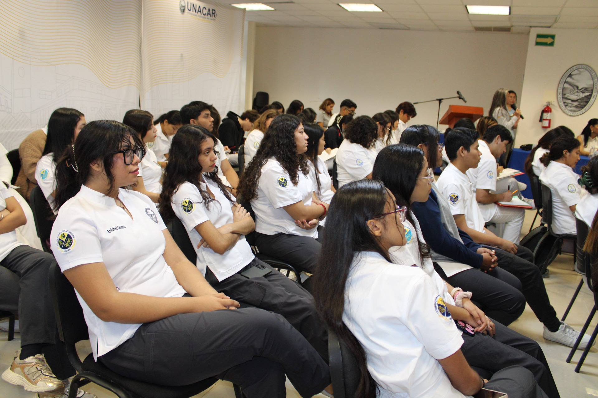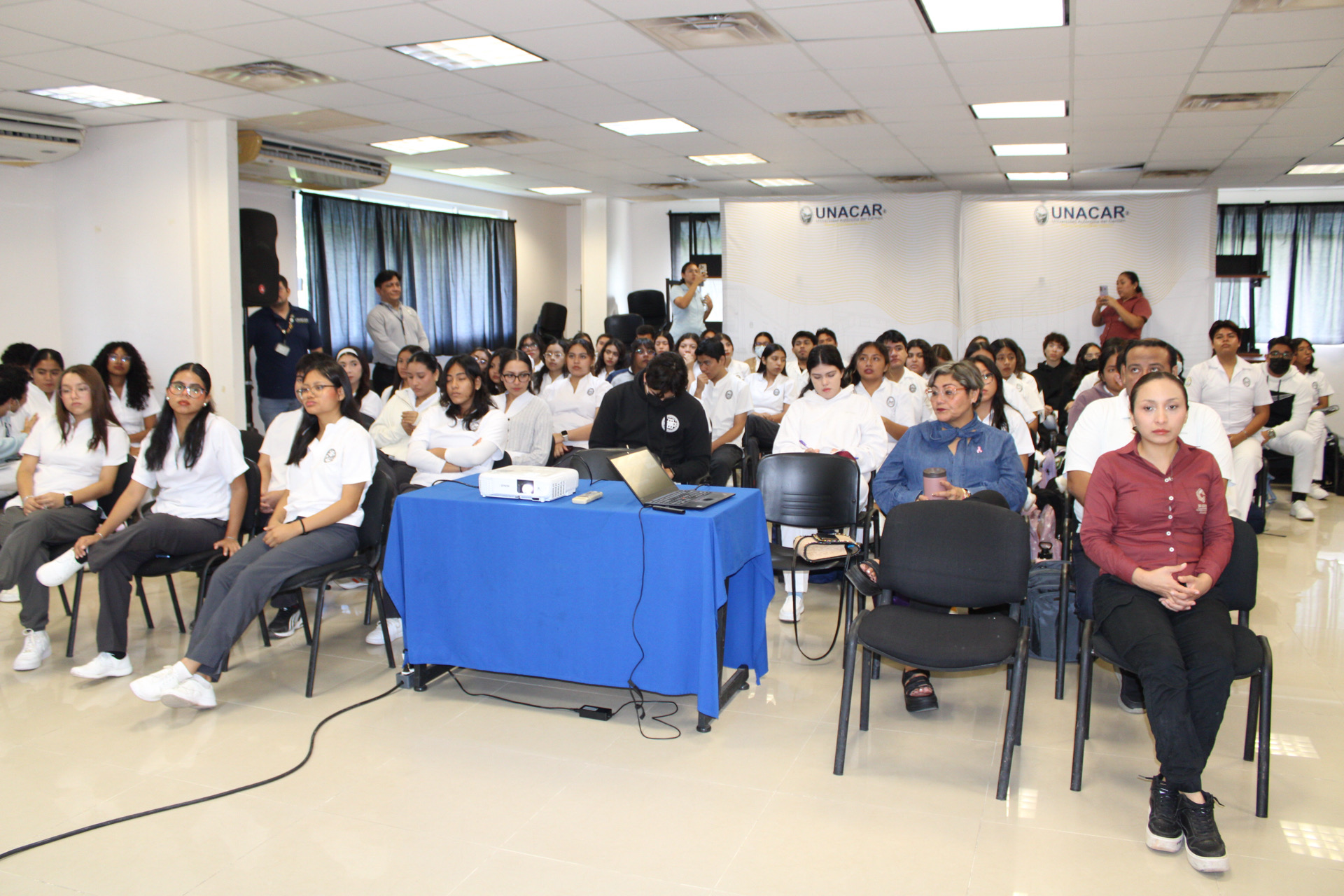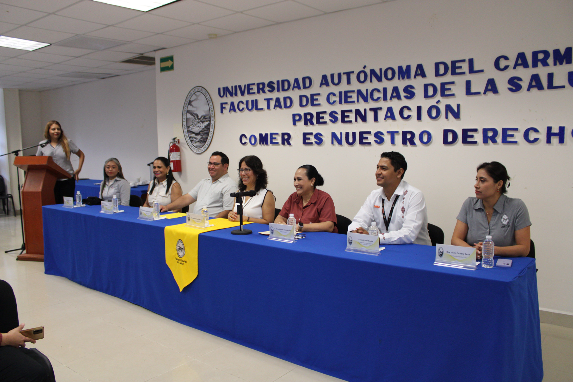 Estuvieron presente en el evento la Geóg. Rosemarie Lazarus Jaber, presidenta del Patronato DIF Carmen; Lic. Diana Margarita Villanueva Badillo, directora del DIF Carmen; Mtra. Yasmín Escalante García, secretaria administrativa de la Facultad; docentes y estudiantes.