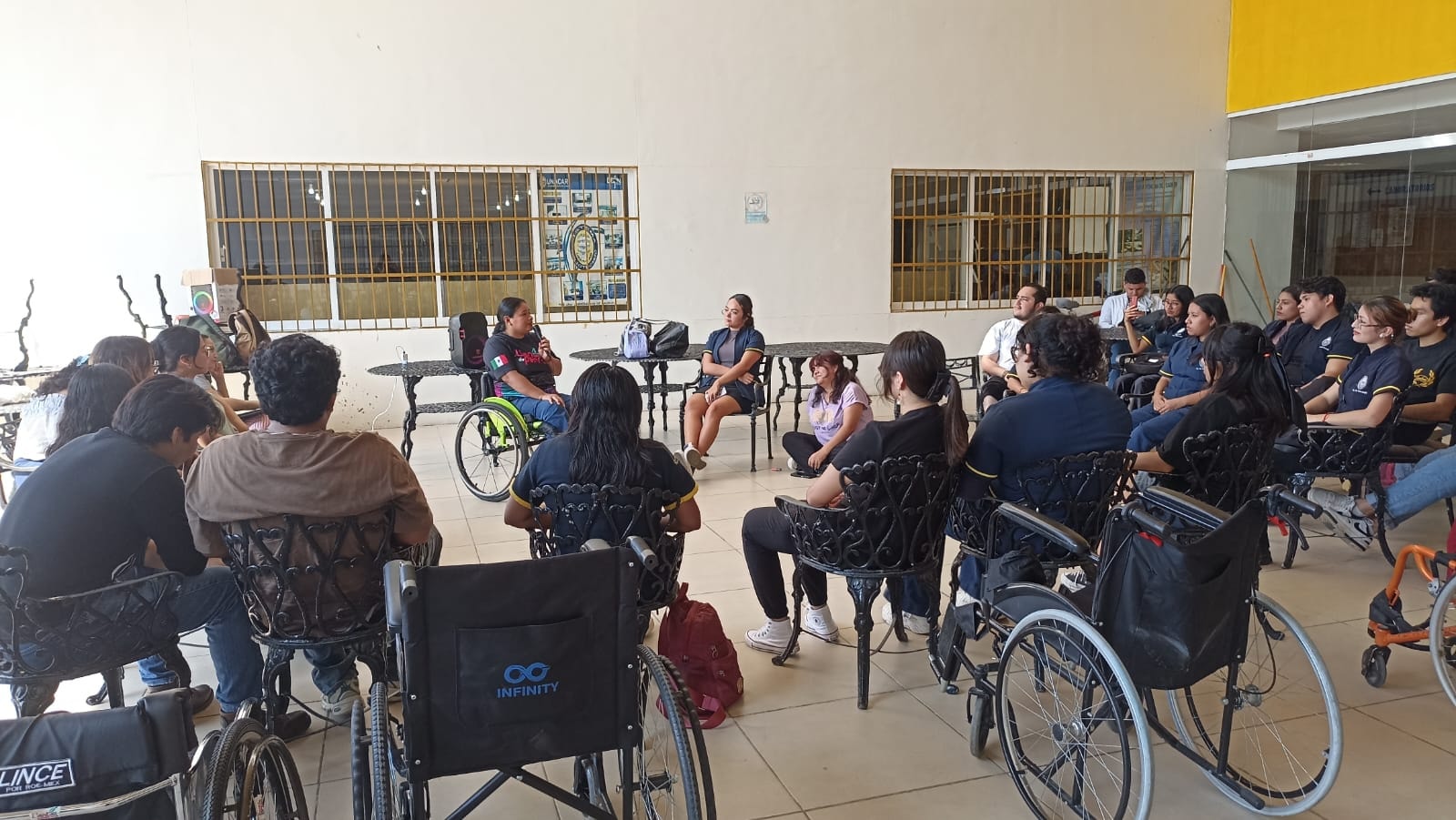 El taller realizado el pasado 14 de octubre en la explanada de la FCS, tuvo una duración de tres horas, formó parte de las actividades del Programa de Psicología y consistió en conocer el testimonio de la licenciada Aes al adquirir la discapacidad motora.