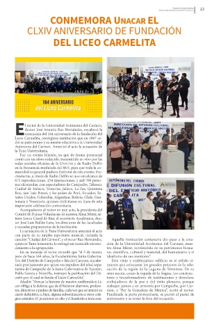 canción “Ciudad del Carmen”, y el rector Ruz Hernández, Aquella institución centenaria dio paso a la crea-