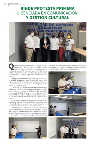 Q uedó marcado para la historia del programa Co- concluido de forma satisfactoria su proceso académico, y