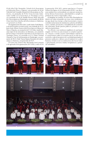 con promedio de 96.26; Imelda Patricia Pérez Miranda Al dirigirles su mensaje, el doctor Ruz Hernández los