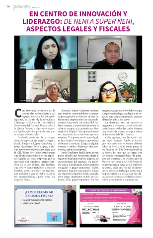 tos legales y fiscales que toda neni que señaladas. Explicó: “el emprendimiento una sesión vía zoom como por enlace