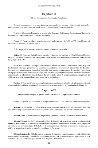 Tercero. Los acuerdos y convenios de cooperación académica nacional o internacional serán elabo-