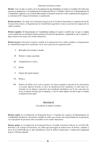 Consejo Universitario, el Departamento de Contabilidad requisitará el acta de cancelación o depuración de